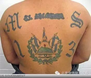 这个男人背上的MS13代表着Mara Salvatrucha,拉丁裔的大帮派,以其冷酷和残暴而臭名昭著。MS13起源于洛杉矶,但是现在遍布美国各地,还发展到了墨西哥、中美洲和加拿大。除了在身上纹身外,MS13的成员也会在脸上纹上复杂的纹样。