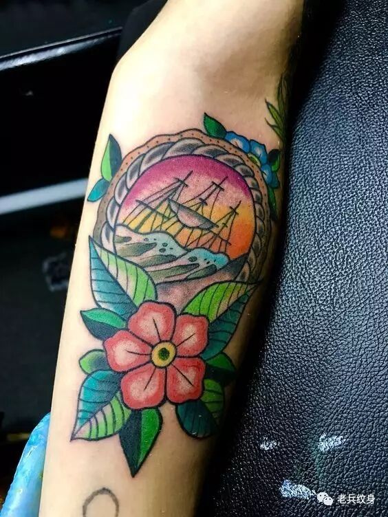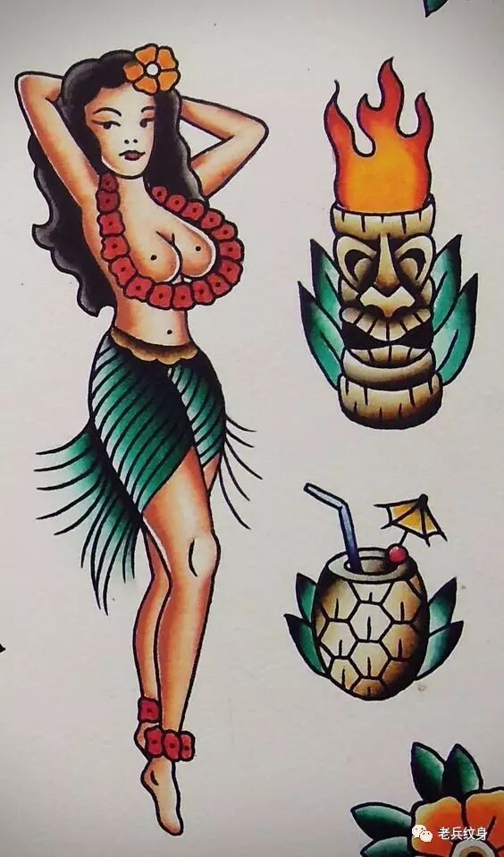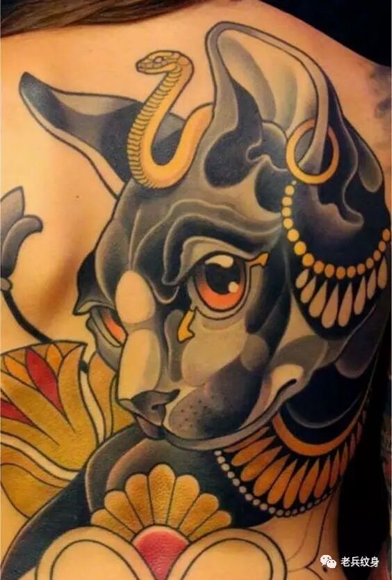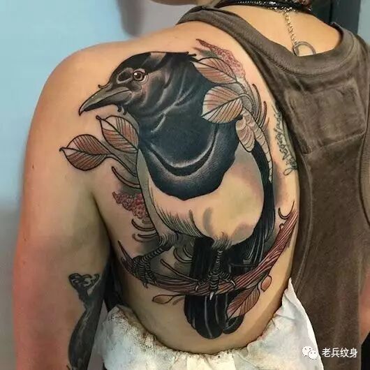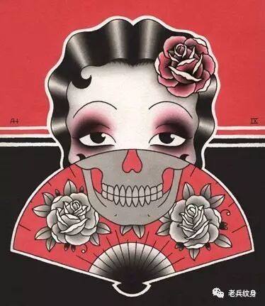 色彩方面区别老派纹身比较中规中矩的大面积纯色平涂和毫无韵律变化的切线,线条粗细变化韵律感强。