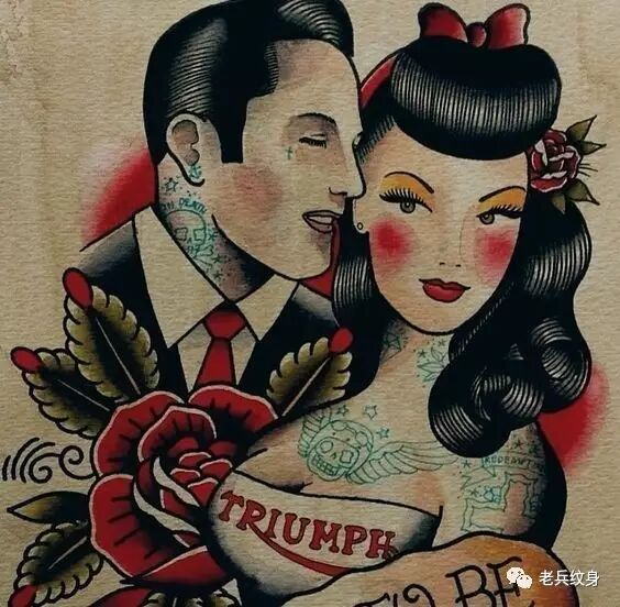 相较于oldschool刻板的线条和颜色,New school多了些生动和活泼但也没有丢失老式欧美纹身的古味儿,粗粗线条的装扮下是一颗复古的心。