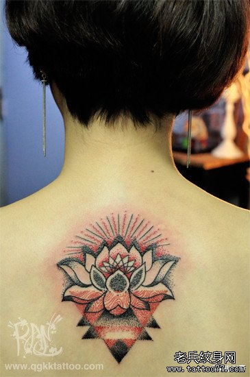 女生背部时尚漂亮的莲花纹身图案