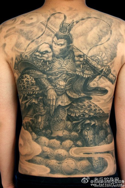 后背霸气超酷的满背孙悟空纹身图案