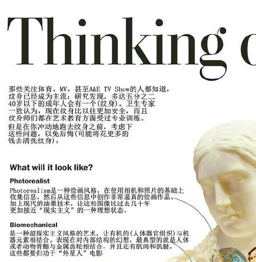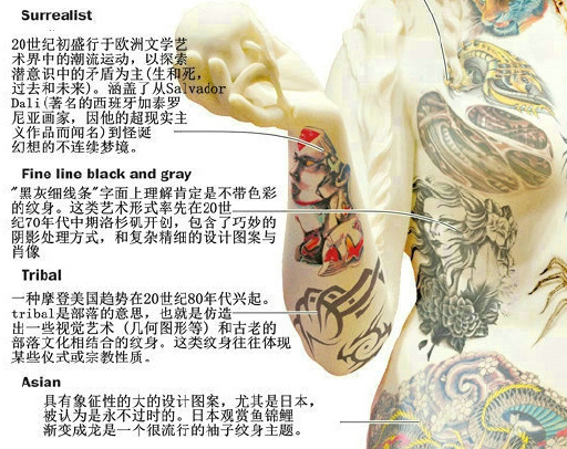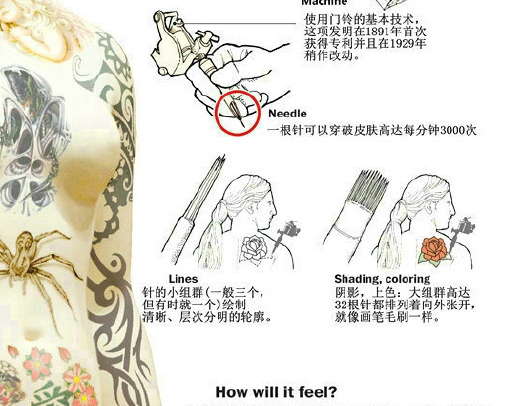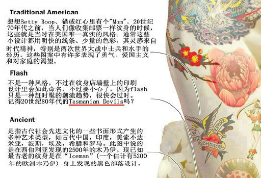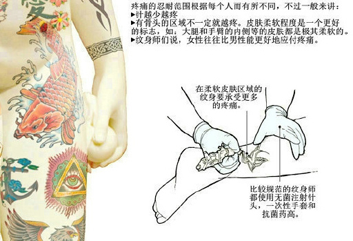 种类,纹身是怎样流行起来的,它的原理,疼痛感受程度,如何保养它们,在什么部位纹身比较不容易褪色变形?