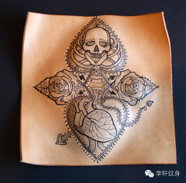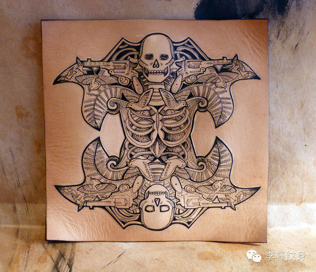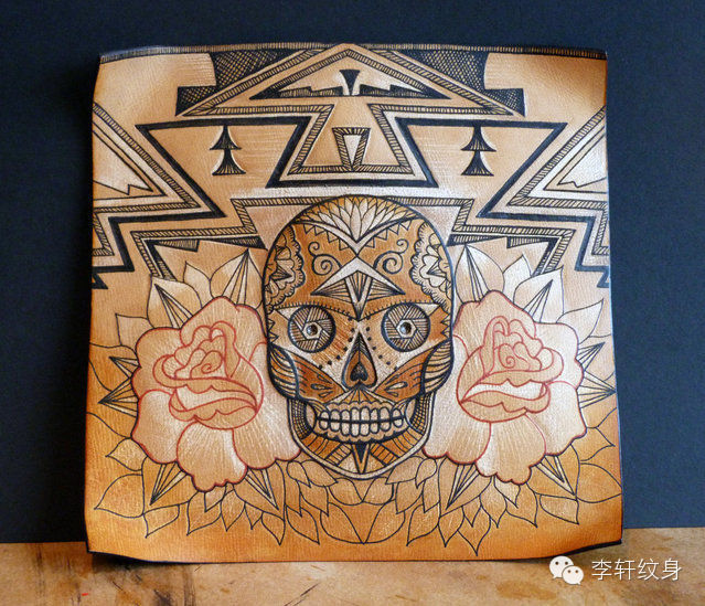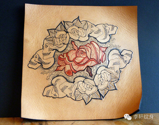 皮革上的纹身创作也是他的小爱好,下面小编带你一起去欣赏吧,也许它将你的下一个纹图的灵感~~~