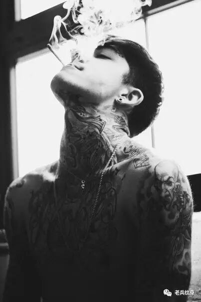 哎哟~厉害了我的哥。敢选择脖颈纹身的,那一定是魅力真男人!试问:有这样带有脖颈纹身的大帅比的蓝盆友,还有谁的虚荣心不会被满足!